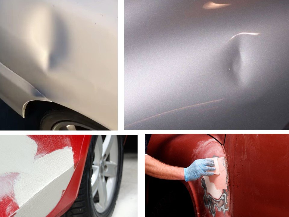 การโป๊วสีนําสีโป๊วที่ผสมเสร็จแล้ว ไปโป๊วบนพื้นผิวที่มีรอยยุบ บุบ หรือ บริเวณพื้นผิวที่ไม่เรียบ รอให้สีโป๊วแห้ง แล้วขัดด้วยกระดาษทรายให้ผิวเรียบเนียน